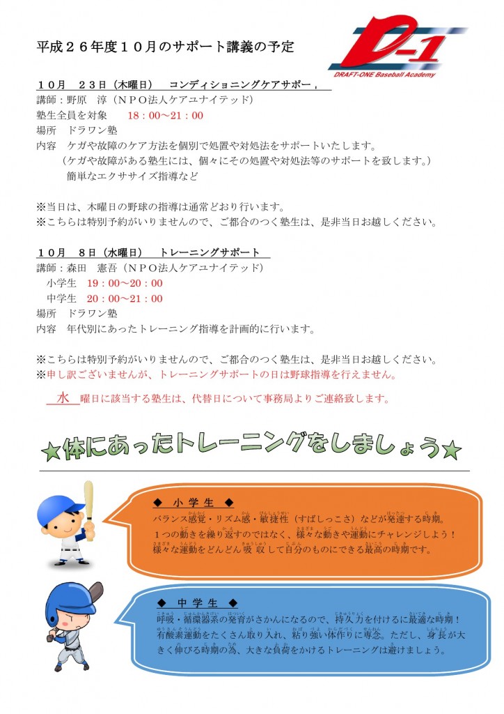 平成26年10月サポート講義のお知らせ★