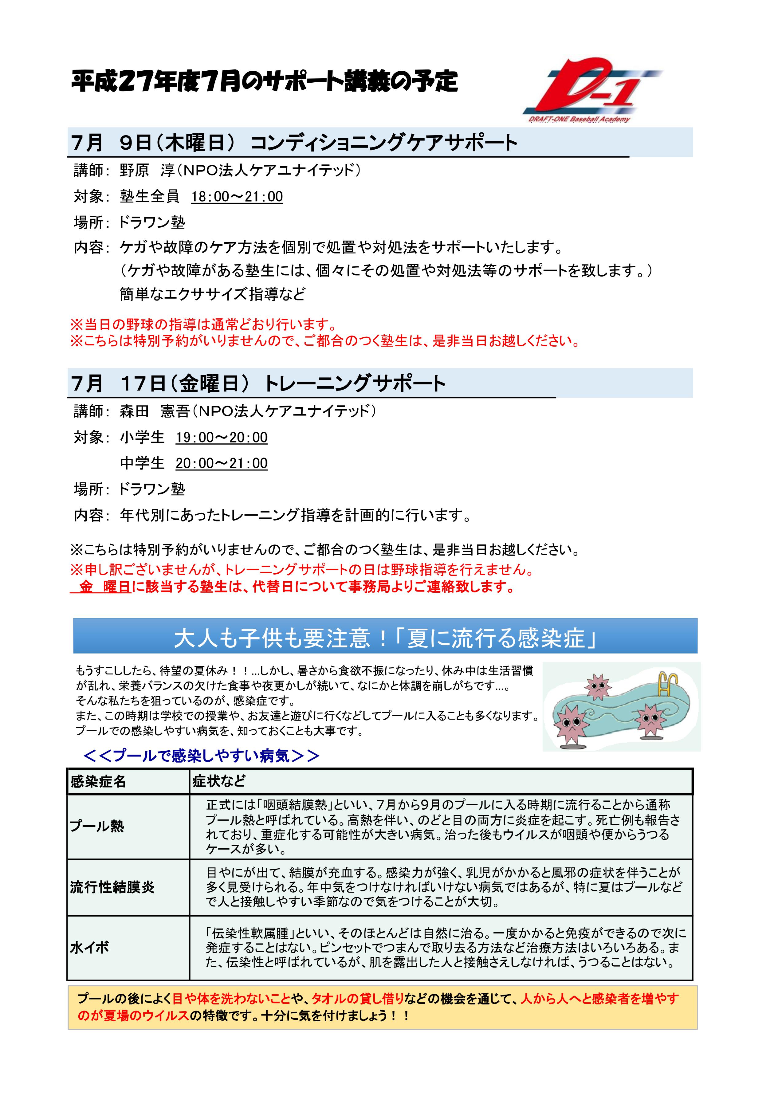 平成27年度7月サポート講義のお知らせ★